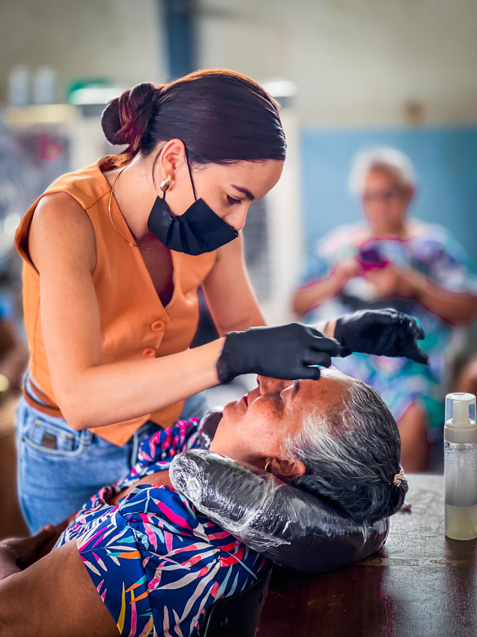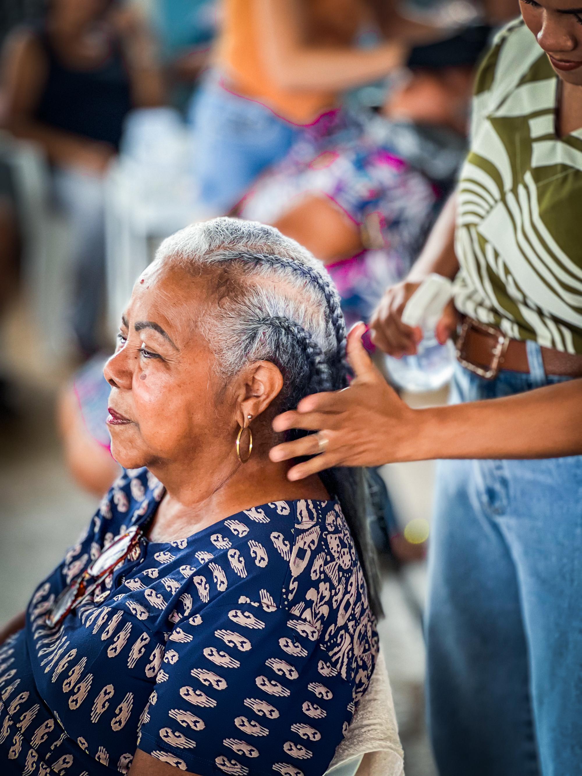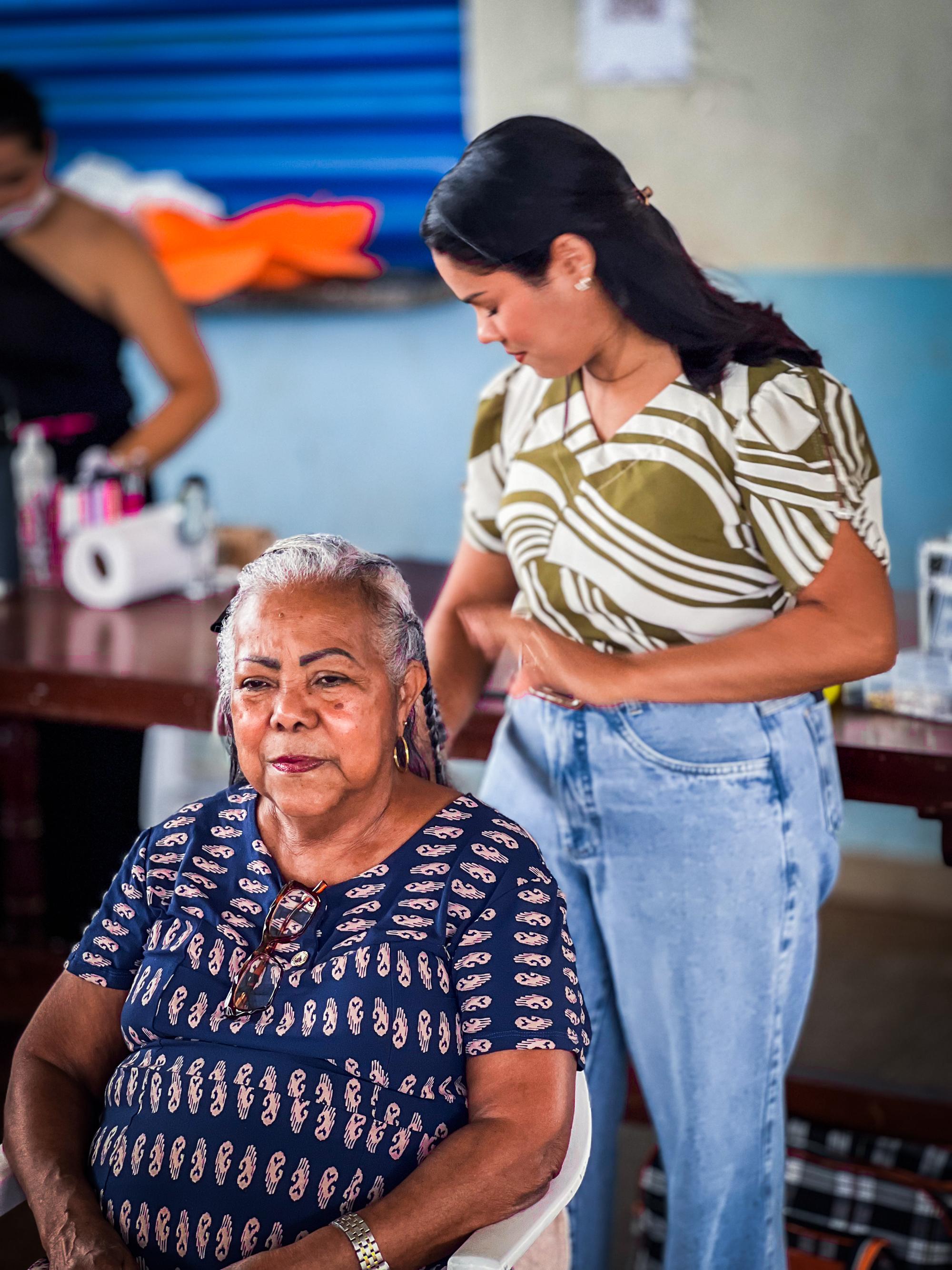 Entre as atividades oferecidas estiveram atendimentos de beleza, com profissionais realizando serviços de manicure, maquiagem, cabeleireira e penteados, proporcionando autoestima e momentos de cuidado pessoal às participantes.